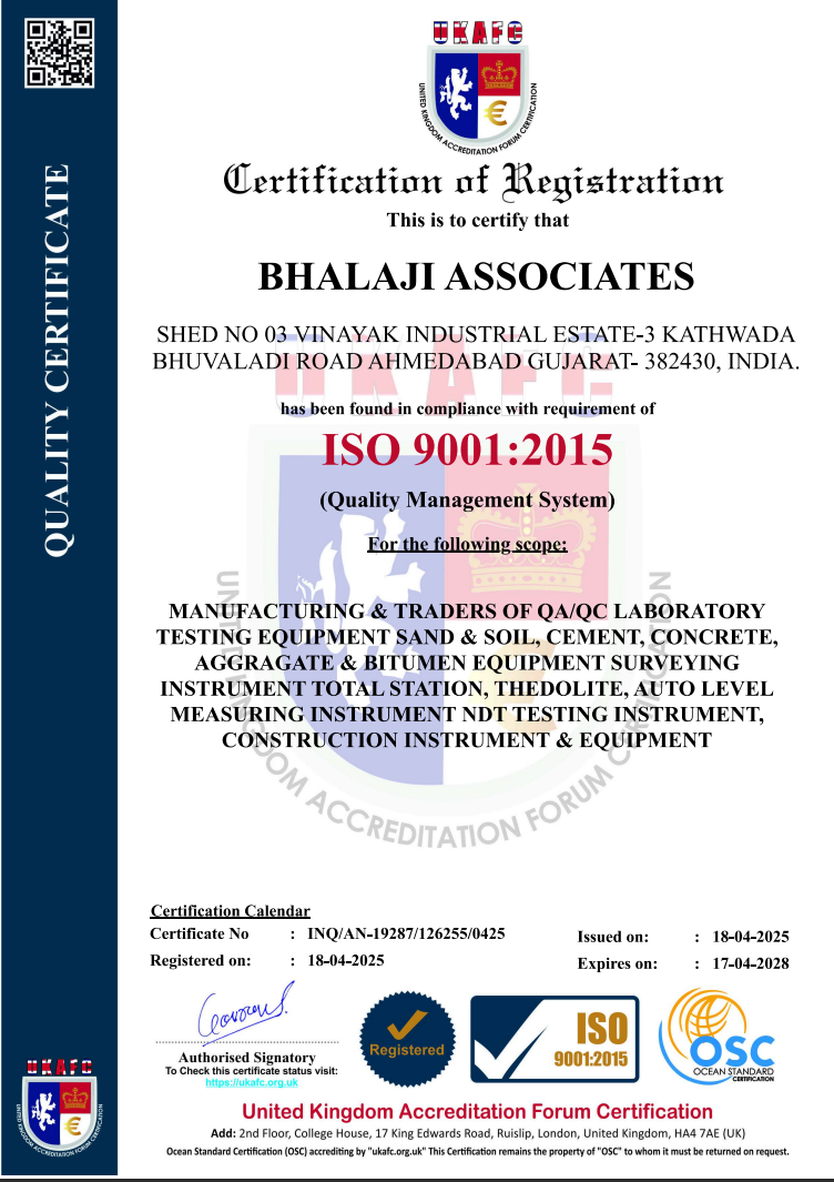 Since 2018, Bhalaji Associates has equipped construction and QA/QC labs across India with dependable testing instruments—supported by ISO-certified calibration, rapid service, and expert guidance.